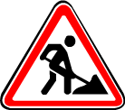 Предупреждает, что съезд на обочину опасен в связи с проведением на ней ремонтных работ. Применяется со знаком 1.25.